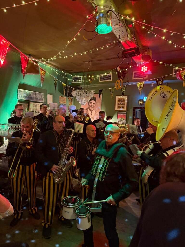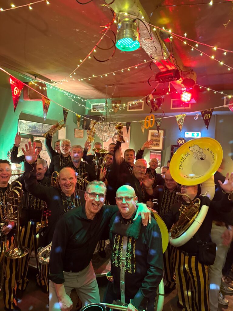“Dat gaat naar Den Bosch toe…” 6 december 2025 Op 6 december hadden we het laatste optreden van dit jaar. Het was een besloten in de Heeren van Leuven. Voor een fan die 60 jaar werd. Deel dit bericht op uw eigen platform Twitter Facebook LinkedIn E-mail Arno Gerelateerde berichten Najaarsmarkt We naderden eind 2025. Hiervoor hadden we nog twee optredens, waaronder de najaarsmarkt georganiseerd door… Intocht Vierdaagse Nijmegen Op vrijdag 18 juli gingen we op pad met de "Zwajé-de-la-Mimol-Krasbus". De bestemming was uiteraard… Vierdaagse feesten op zondag We houden de traditie in stand. Zo zijn we op zondag 13 juli 2025 weer…